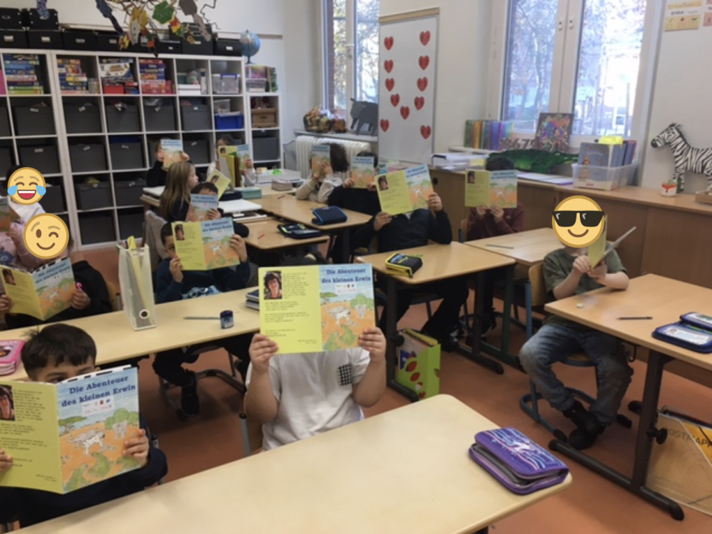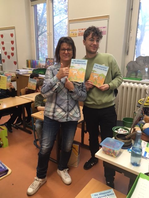 Juchhu! Es gibt eine tolle Neuigkeit: 360 Kinder dürfen sich im Oktober auf ein Geschenk freuen. In ihren Klassen gebe ich ehrenamtlich Lesungen (Verein Bildung und Gesellschaft e.V.) und im Anschluss erhalten die Schüler/innen das Buch „Die Abenteuer des kleinen Erwin“ als Geschenk. Wir danken der BVV Reinickendorf, die unsere Arbeit im Verein unterstützt. Unser Ziel ist es, Kindern die Freude am Lesen zu vermitteln.