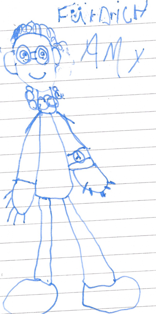 Amy aus der Charly Chaplin Grundschule hatte mich sogar genau beobachtet und mich detailgetreu gezeichnet. Da stimmt wirklich alles! Also wer diese Zeichnung gesehen hat, wird mich überall erkennen! Danke Amy!