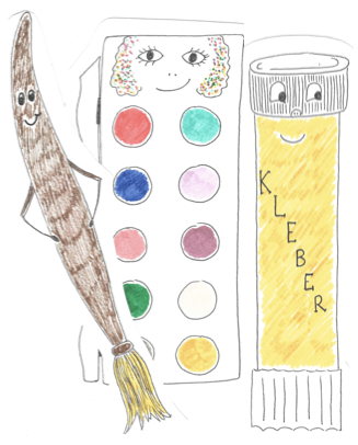 Frau Tuschkasten lächelte fröhlich, Herr Pinsel jedoch räusperte sich etwas ungehalten. Dieser Kleber konnte doch nicht anders! Immer diese Scherze!